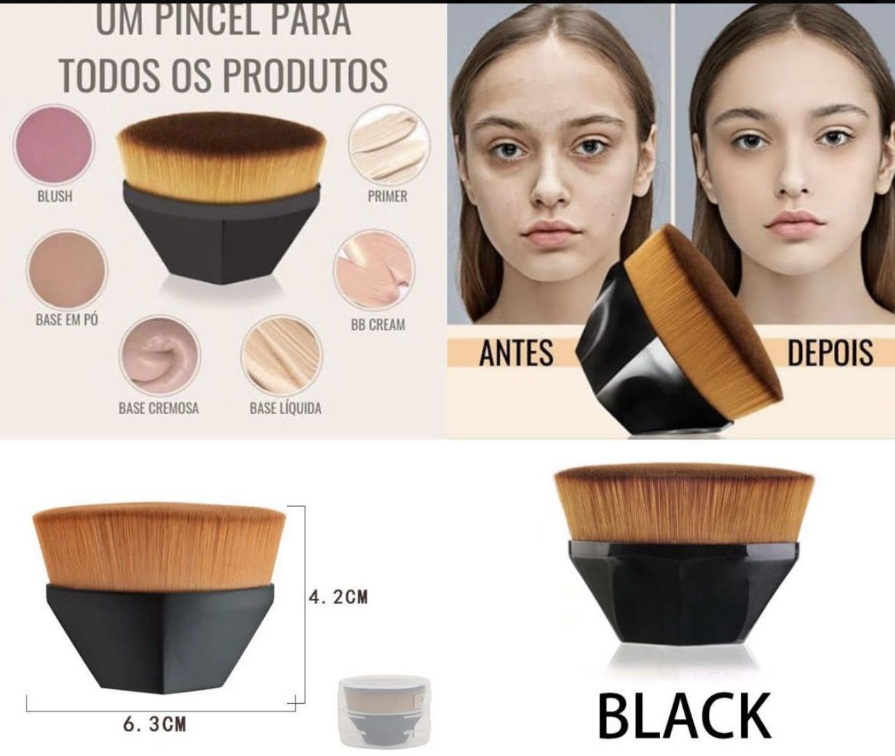 Transforme sua rotina de maquiagem com um pincel que facilita a aplicação e realça sua beleza com praticidade!